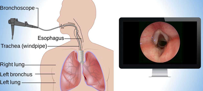 During rigid bronchoscopy, the patient is placed under general anesthesia. The rigid bronchoscope is introduced through the mouth and into the airways. Various instruments can be used through the scope to:
